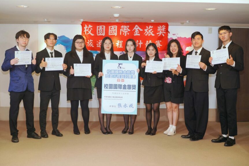 為鼓勵學子設計優質的台灣旅遊行程,由中華民國旅行業品質保障協會主辦的「2025校園國際金旅獎旅遊行程設計競賽」,9/17舉行頒獎典禮,銘傳大學應用英語學系與觀光事業學系3組學生團隊,從全國147組參賽作品中脫穎而出,勇奪入境旅遊組「韓國來台類」、「日本來台類」及國民旅遊組「運動休閒類」優勝,表現亮眼。